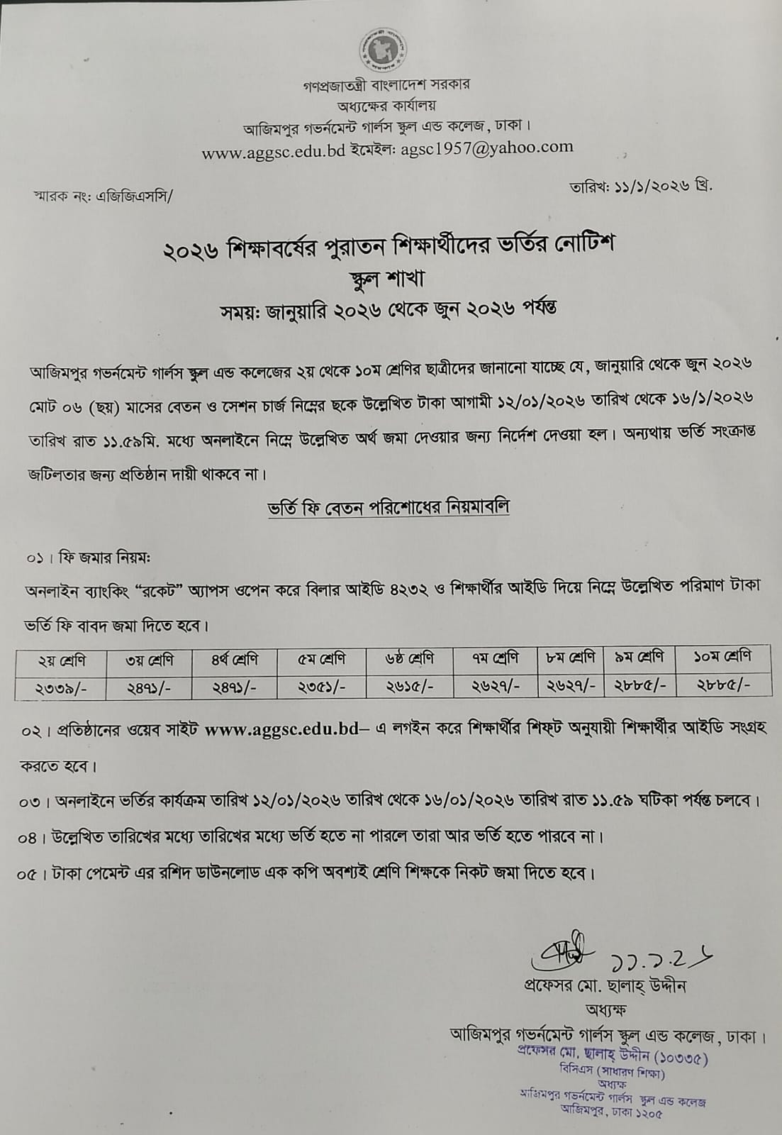 Principal, Azimpur Government Girls School & College, Dhaka.
